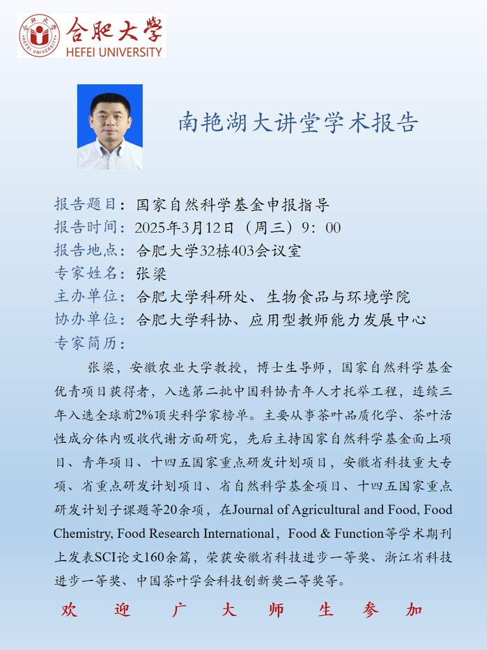 【南艳湖大讲堂】国家自然科学基金申报指导