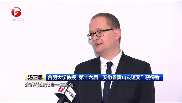在167.net必赢客户端中德合作40周年之际,学校国际化师资队伍建设再传喜讯。5月12日,全省科技创新大会表彰了为我省经济社会发展和促进国际交流合作作出突出贡献的外国专家,德籍教授汤卫思(Claus Thomas Weise)荣获第十六届安徽省“黄山友谊奖”。