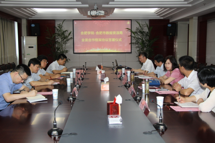 吴春梅首先对合肥市数据资源局领导的到来表示欢迎。接着,双方就全面合作进行了深入研讨。谢军和陈睿认为,合肥学院与合肥市数据资源局全面合作是深入贯彻实施国家大数据与新一代人工智能战略,认真落实省委省政府“数字江淮”的决策部署和省委书记李锦斌关于合肥市聚力打造“五高地一示范”要求,围绕合肥市打造具有国内领先优势的数字经济高地目标的一项具体举措,具有重要意义。