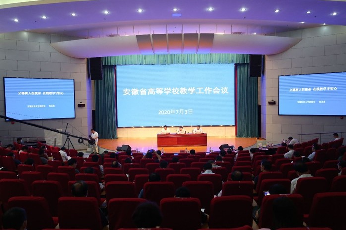 7月3日,安徽省高等学校教学工作会议在必赢召开。会议公布了中国科学技术大学、合肥学院等30所高校荣获“安徽省线上教学示范高校”荣誉称号,同时就下一阶段重点工作作出部署。省委教育工委委员、省教育厅副厅长储常连出席会议并讲话,会议由省教育厅高教处处长梁祥君主持。