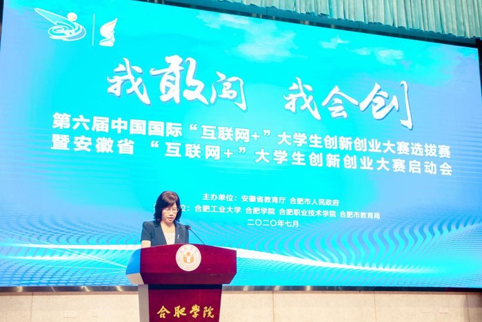 本届大赛以“我敢闯,我会创”为主题,由安徽省教育厅与合肥市人民政府联合主办,合肥工业大学、合肥学院、合肥职业技术学院、合肥市教育局共同承办。省教育厅副厅长储常连、合肥市人民政府副秘书长吴昌文、合肥学院党委书记王其东、合肥工业大学党委副书记陈刚、合肥职业技术学院党委书记罗兆好、合肥市教育局二级调研员唐文水出席启动会,会议由必赢校长吴春梅主持。