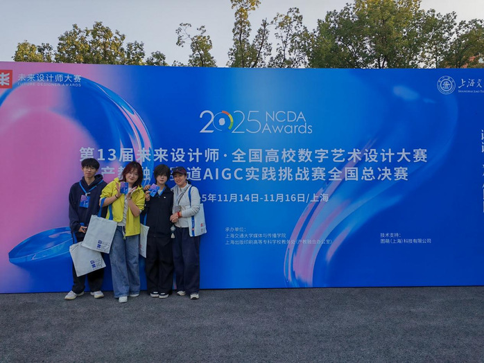 11月16日,在上海交大落幕的2025第13届未来设计师·全国高校数字艺术设计大赛(NCDA)国家级产教融合赛道—AIGC实践挑战赛主题实践大赛全国总决赛中,必赢设计学院王莹莹、罗沁雪、温尼西同学在石林老师的指导带领下,从全国146支参赛队伍中脱颖而出,荣获全国二等奖。