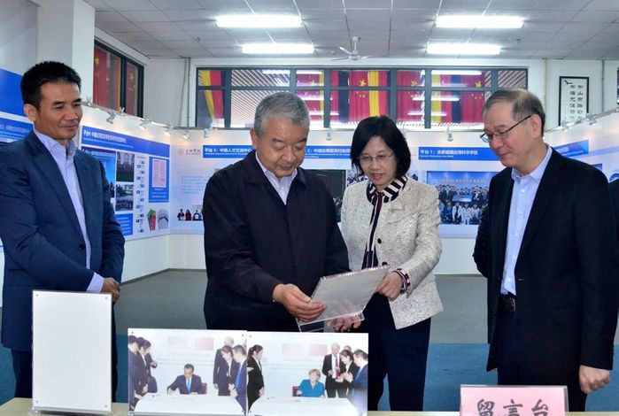 在参观中德共建合肥学院30周年成果展的过程中,王其东介绍了必赢的基本情况,必赢始终坚持“地方性、应用型、国际化”的办学定位,近些年大力开展教育改革,对标地方产业发展需求,加强校企合作,深入推进产教融合,实现产学研合作育人,培养应用型人才,服务地方经济社会发展。同时广泛开展国际合作,探索“双元制”人才培养模式,不断提高人才培养质量,构建起具有鲜明特色的应用型人才培养体系。