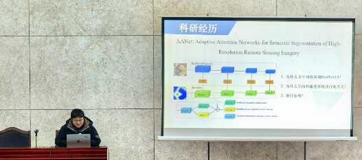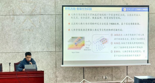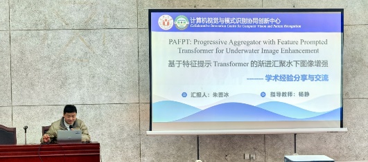 首先由陈鑫同学分享了基于深度学习的骨架行为识别技术报告,深入剖析深度学习算法在处理复杂骨架数据时展现的强大优势,为该领域的研究实践提供了新方向和有力支撑。“安徽省研究生创新创业之星”童安炀同学围绕情感计算与行为识别技术,从理论知识储备的夯实、课题研究的深入开展到科研节奏的精准把握,全方位地分享了自己的科研历程与心得,为同学们打开了科研思路的新视野。李宇同学聚焦少样本背景下跨语言意图识别方法研究,详细阐释了其在多语言场景下利用少量样本精准识别用户意图的重要价值,这对于打破语言壁垒、促进跨文化交流具有突破性意义,为语言技术的发展注入了新动力。李小凡同学则展示了融合前沿技术的 PM2.5 浓度长期预测方法,基于图神经网络开发出创新性的空间特征模型,并结合自身经历,无私分享论文撰写经验,坦诚交流遇到的问题及解决方案,耐心解答同学们的提问,现场学术氛围浓厚热烈。朱善冰同学分享了基于特征提示Transformer的渐进汇聚水下图形增强的报告,为该领域的研究与应用拓展了新的路径和视野。针对同学们在专业学习与科研探索中的困惑,悉心解答、倾囊相授,为大家指明前行方向。张黔川同学分享了AANet: 用于高分辨率遥感图像语义分割的自适应注意力网络的文章,他深入剖析了 AANet 如何通过创新的自适应注意力机制,在复杂的遥感图像数据中准确识别出不同的土地覆盖类型、人造建筑设施以及自然地貌特征等,为遥感图像的智能化分析与解译提供了更为准确和高效的技术手段。