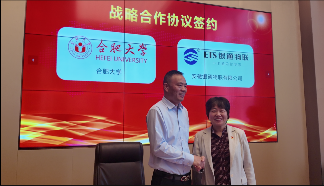学院党委与安徽银通物联党支部首先开展了理论联学,学院党委书记牛欣主持学习会。党委理论学习中心组与企业代表共同学习了习近平总书记三次考察安徽系列重要讲话指示精神、习近平总书记在民营企业家座谈会上讲话的精神以及中共中央办公厅、国务院办公厅关于加快构建普通高等学校毕业生高质量就业服务体系的意见等内容。学院党委副书记姚蓓蓓,副院长陈圣兵和科研办主任张琛分别围绕学生就业、产学研合作和研究生联合培养等方面作了交流。牛欣结合学习体会,就双方如何进一步推进产学研合作、人才培养,围绕实验室智能化管理、学生就业等事项进行了深入交流。随后,双方签订战略合作协议。