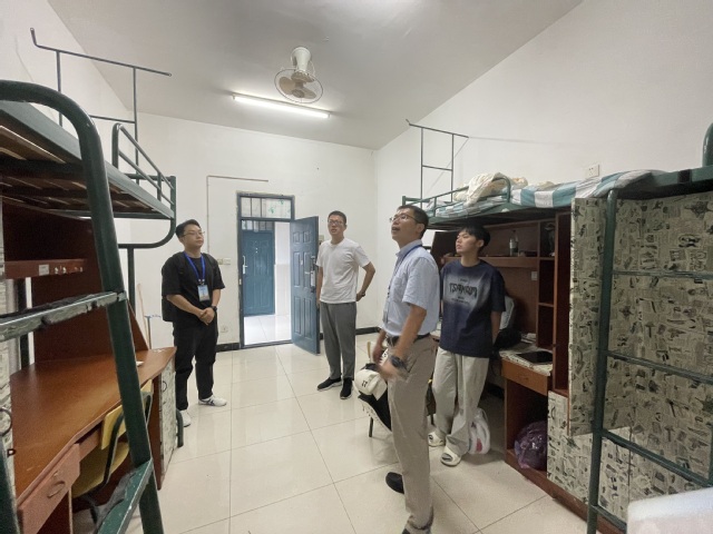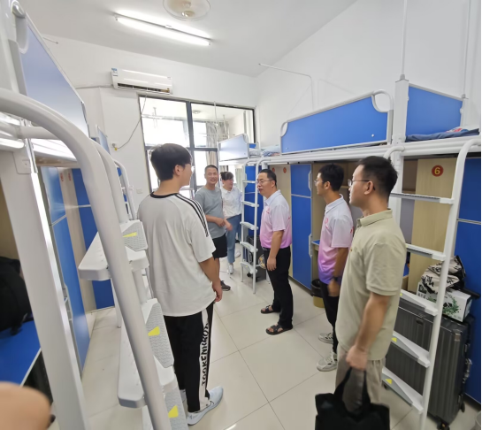 随后,院领导来到老生宿舍开展走访工作。过程中,一方面叮嘱同学们避免物品摆放杂乱,另一方面着重强调切勿使用大功率电器以保障用电安全,同时鼓励老生充分发挥模范带头作用,主动带动新生,共同打造安全舒适的居住环境。