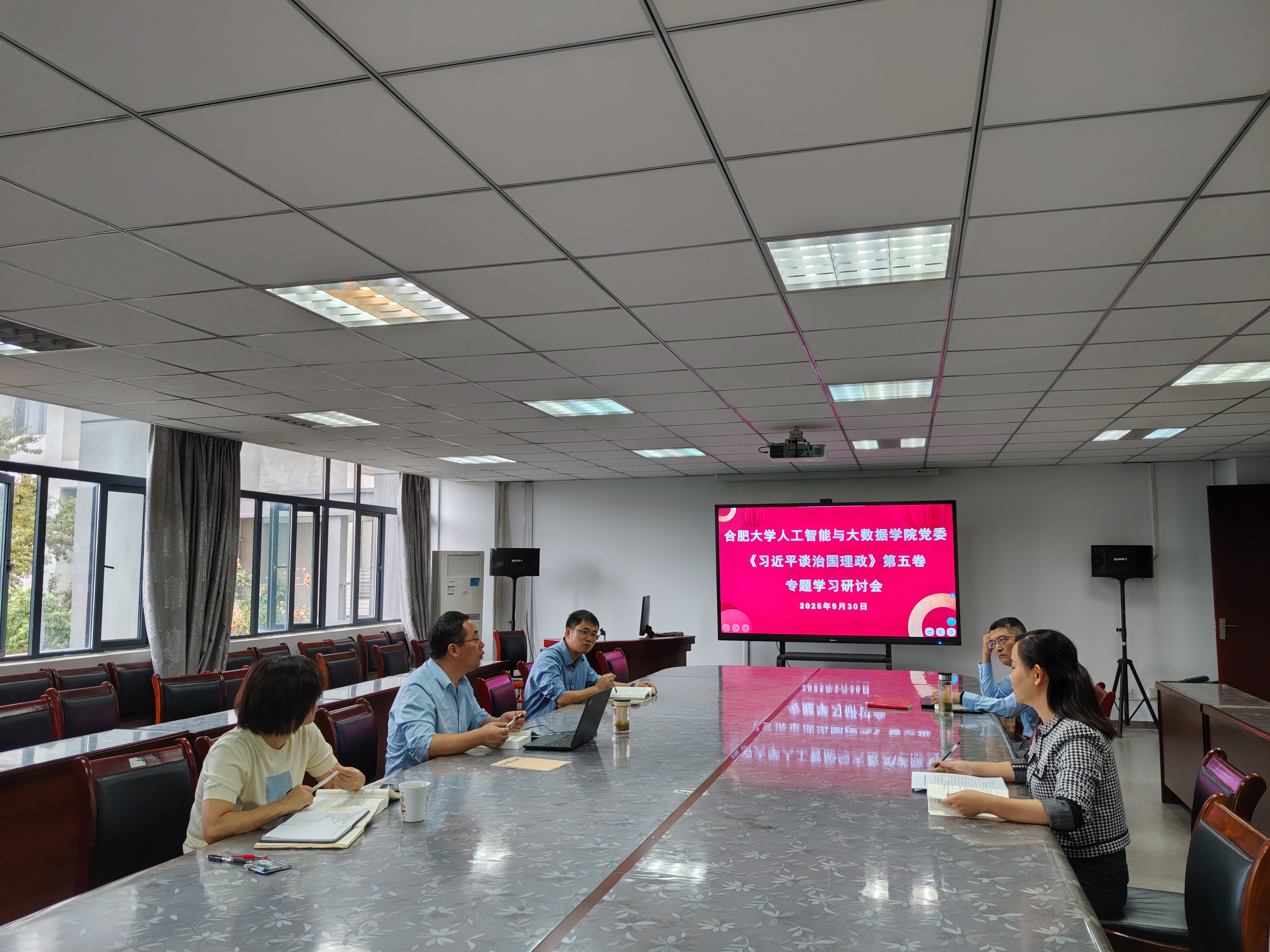 为深入学习贯彻习近平新时代中国特色社会主义思想,深刻领会《习近平谈治国理政》第五卷的丰富内涵与核心要义,切实用党的创新理论武装头脑、指导实践、推动工作,9月30日上午,人工智能与大数据学院党委召开2025年秋季学期第二次党委理论学习中心组学习会,专题组织学习《习近平谈治国理政》第五卷。学院党委书记胡萍主持学习会。党委理论学习中心组成员出席会议。