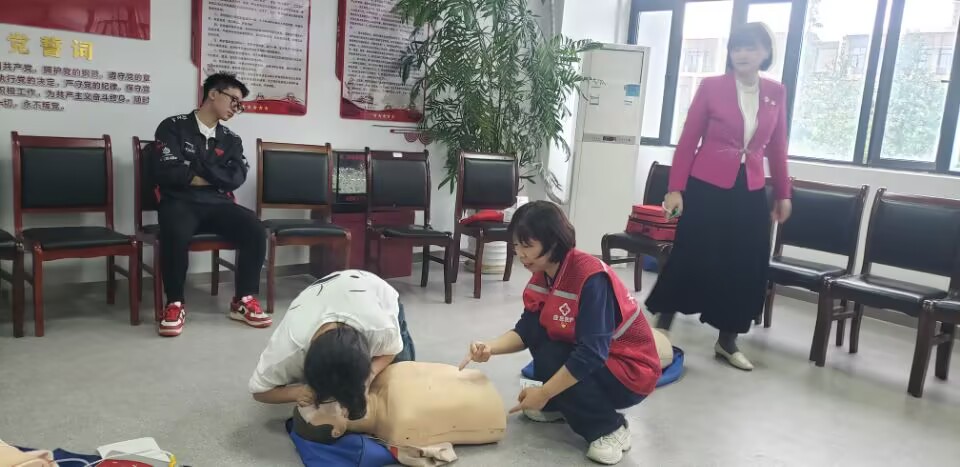 培训中,袁老师聚焦实用急救技能,深入讲解心肺复苏操作要点,详细拆解心肺复苏的操作步骤,示范如何判断患者意识、呼吸和脉搏,从胸外按压的深度与频率,到开放气道、人工呼吸的规范动作,逐一讲解要领,确保在场的师生掌握每一个关键细节。在AED使用培训中,袁老师详细介绍了AED的工作原理、操作步骤和注意事项,帮助师生树立“人人学急救、急救为人人”的安全意识。