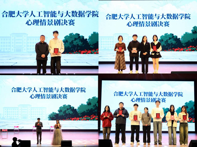为确保评审工作的公平、公正、公开,本次大赛采用百分制评分规则,评委团由专业教师组成,从剧本主题贴合度、演员舞台表现、整体舞台效果、时间把控精度四大维度进行综合考评。颁奖环节中,安徽建筑大学教授王健、人工智能与大数据学院党委副书记姚娜、学校大学生处心理健康科老师顾盼盼、分别为一等奖、二等奖、三等奖获奖队伍颁奖。其中,25网络工程2班获得一等奖、25大数据1班、25网络工程1班等队伍荣获二等奖,24智能科学与技术1班、24网络工程2班等队伍荣获三等奖。获奖队伍代表纷纷表示,将以此次比赛为契机,继续以戏剧为载体传递心灵力量,让青春正能量照亮更多身边人。
