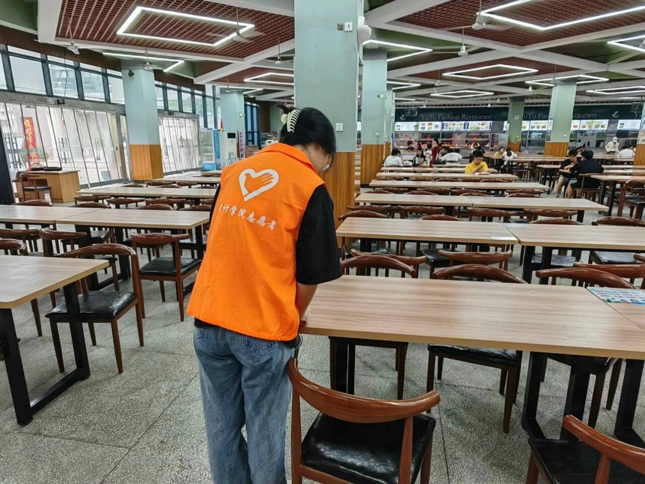 活动当天,人工智能与大数据学院的志愿者们早早地来到食堂,他们身穿统一的志愿者服装,精神饱满地投入到工作中。他们主要负责清理桌面上的餐余垃圾,确保每张餐桌都干净整洁,同时,还协助阿姨回收餐具。在他们的共同努力下,食堂内的环境变得更加整洁、舒适,师生们的用餐体验也得到了显著提升。