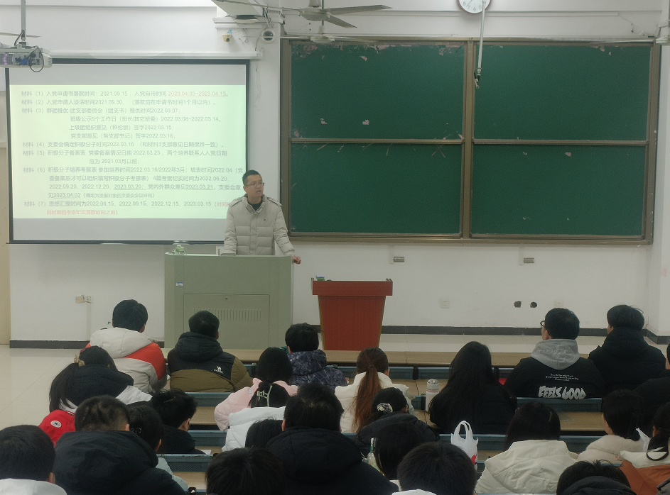 威力旺围绕《中国共产党发展党员工作细则》,结合学校组织部发展党员专项检查中发现的问题,从发展党员的5个阶段25个步骤的时间脉络入手,详细讲解了入党的标准和条件、入党积极分子的确定和培养教育、发展对象的确定和考察、预备党员的接收、管理、考察和转正等发展党员工作流程与要求,并要求各支委成员对在校党员档案进行梳理排查,并帮助本学期新发展入党的同志完善入党材料。