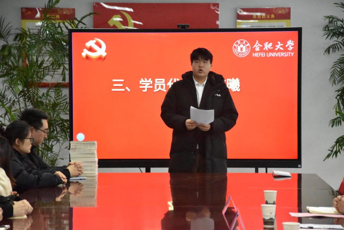 首先,全体起立奏唱国歌。先进制造工程学院学生叶兴玉作为党员代表进行发言,她结合自己的入党历程鼓励同学们通过学习和实践发挥党员的先锋模范作用,勉励大家牢记党的宗旨使命,立志为强国建设、民族复兴而努力奋斗。随后,党校学员代表语言文化与传媒学院学生余陈曦发言,他表示每位学员通过党校学习后,都需要用党的创新理论武装自己,更好发扬党的优良传统,用激情和行动书写青春篇章。