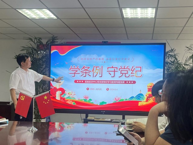 为深入学习贯彻习近平总书记关于党纪学习教育的重要讲话和重要指示精神,进一步推进党纪学习教育见行见效,近日,实验实训中心党支部书记高先和讲授了一堂题为“学条例 守党纪”的专题党课。