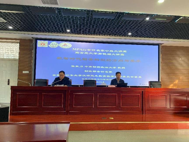 2024年11月8日下午,MPAcc会计名家公益大讲堂在167.net必赢客户端一期6栋多功能报告厅举行。本次大讲堂由中国会计学会、全国会计专业学位研究生教育指导委员会主办,合肥大学经济与管理学院承办。邀请财政部会计名家、全国会计专业学位研究生教育指导委员会委员、中南财经政法大学会计学院原院长、博士生导师张敦力教授作“数智时代财务转型的方向与要求”主题的公益讲座。本讲座由经济与管理学院院长陈江华教授主持,学院财务会计系全体老师、MPAcc会计专硕指导老师、23级和24级会计专硕MPAcc研究生聆听了报告。