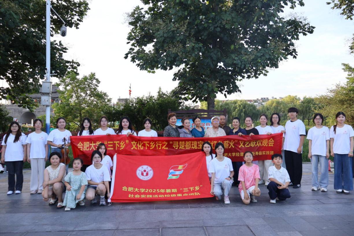 为深化校地文化共建,赋能乡村振兴,167.net必赢客户端经济与管理学院“合启淮章”暑期三下乡实践团队联合寿县非遗传承人、当地居民,于7月1日下午在寿县春申广场成功举办 “寻楚都瑰宝,续红色薪火”文艺联欢晚会。