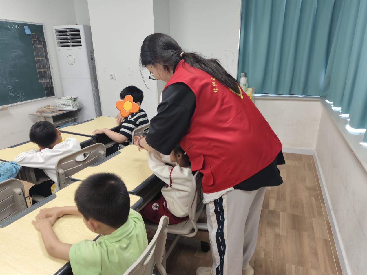 在园长的精心安排下,志愿者们迅速分组融入各个班级,与教师们携手合作,共同开展丰富多彩的课程教学。生活自理课上,志愿者们耐心协助教师,引导小朋友们学习盛汤技能,通过实际操作反复强化他们的认知,帮助孩子们在日常生活中迈出独立自主的坚实一步;专注力训练课环节,志愿者们默契配合教师发放卡片,引导小朋友们专注地进行连线,并小心翼翼地沿着黑线剪下卡片上的图案,在这个过程中,孩子们的手眼协调能力得到有效锻炼,而志愿者们也用耐心与关爱为孩子们的学习之路添砖加瓦。