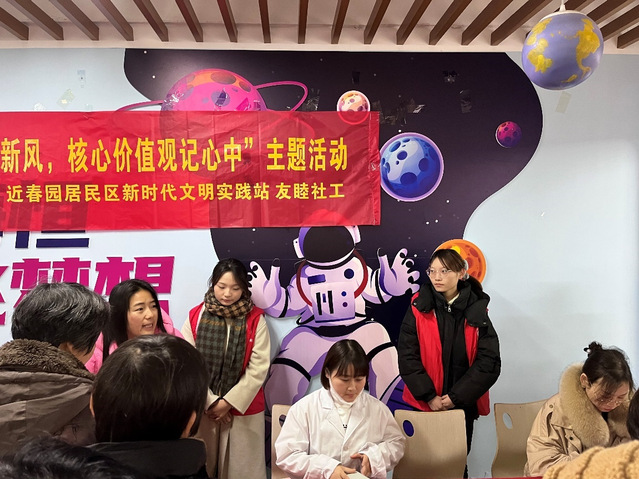 在社区工作人员的组织与安排下,志愿者们以饱满的热情参加活动。首先,志愿者来到留守老人家中进行慰问,给老人送去了亲切的关怀和问候。之后,志愿者们来到社区文明实践站,搬来桌椅板凳,搭建志愿服务台。很快社区居民陆续赶来,志愿服务热闹地开展起来:来自医院的义工为居民们测量血糖血压,开展医疗知识宣讲;来自法院的义工为居民们普及法律知识,回答居民有关法律的问题。