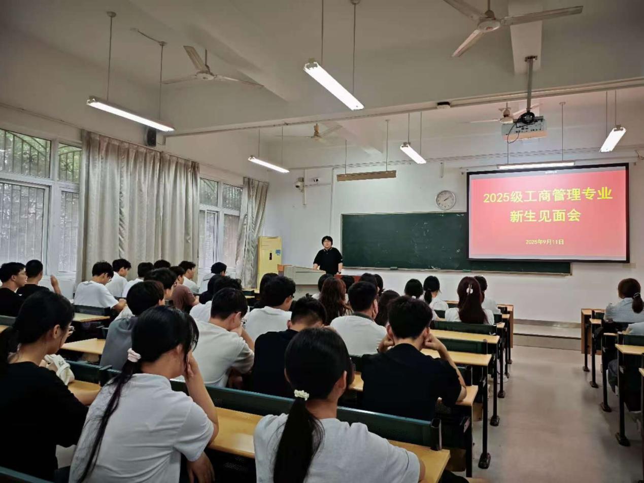 2025年9月11日下午,工商管理教研室于必赢一区6栋105教室成功举办2025级新生师生见面会。教研室全体教师与新生齐聚一堂,共同开启大学新征程。 学科引领,规划未来 教研室负责人杜宇老师从专业定位、课程体系、学业规划及职业发展路径等方面展开详细介绍,着重分析了工商管理专业的学科特色与就业前景,并针对考研升学等学生关切的问题给予系统性指导。