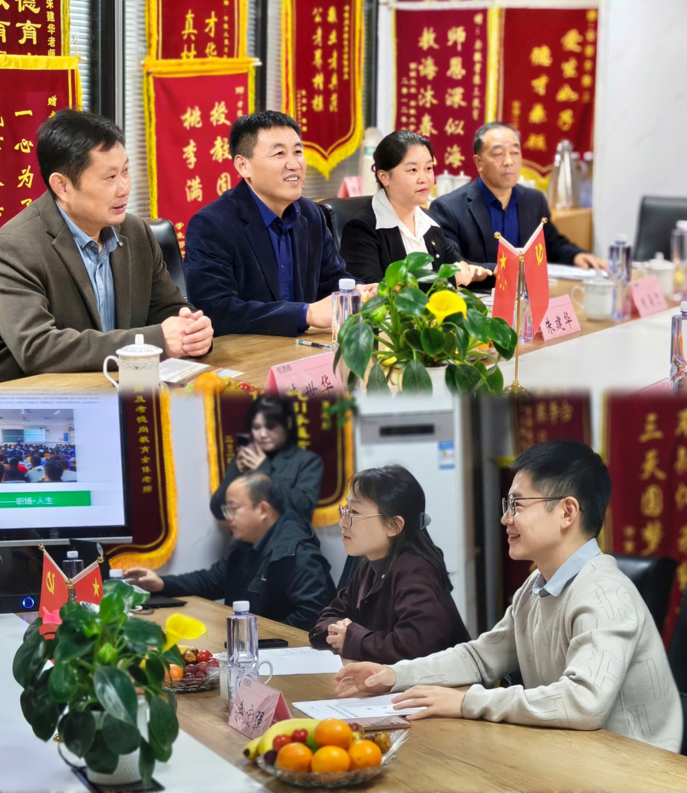 活动伊始,与会人员共同观看短片《退役军人的故事》。镜头聚焦朱建华校长从军营到教坛的创业历程,以“坚韧、守纪、忠诚”的军人底色诠释企业社会责任。随后,校企双方就学生职业规划、专业公益讲座、学院模考大赛等方面的合作进行深入交流。