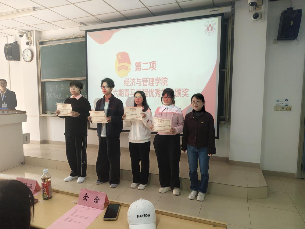 随后进行的“经济与管理学院第六期青马工程优秀学员颁奖”环节,徐娴为获奖代表颁发荣誉证书,充分肯定了他们在理论学习与实践中的优异表现。