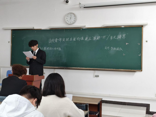 比赛伊始,双方辩手眼神坚定、气场全开,尽显青年学子的朝气与专业素养。开篇立论环节,正方“醉把佳人成双队”率先发声,以“深耕是积累核心竞争力的基石”为立论核心,援引科研领域专家数十年沉潜钻研、终破技术壁垒的实例,层层论证“深耕一行”能让青年在细分领域筑牢根基,形成不可替代的专业优势,是通往高阶自我价值的必经之路。反方“专业团队”亦不甘示弱,迅速从“当代社会问题的复杂性呼唤跨界能力”切入,结合互联网行业跨界创新的成功案例与复合型人才的市场需求趋势,有力阐明“多元跨界”可助青年打破认知围墙,在跨领域的碰撞融合中发掘全新价值增长点。