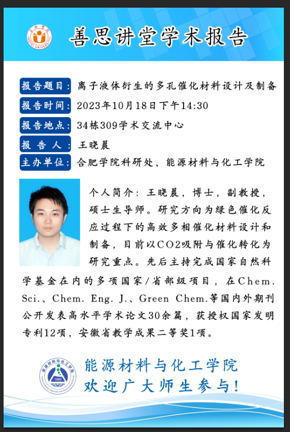 [学术报告]离子液体衍生的多孔催化材料设计及制备