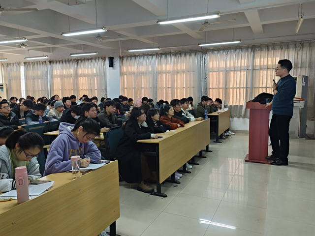 讲座中,邵品德结合自身在金融行业深耕数十年的实际经历,从行业介绍、自我认知、未来规划与目标三个方面进行阐述,向同学们详细介绍了证券行业、银行业、保险业的岗位设置、薪资待遇、专业要求等情况,并对经济类专业的就业方向展开了深入探讨。他提到,要对自我有清晰认知,重视基层经历,抓住行业的风口,关注长远发展。此外,他通过讲述自身的职业发展,鼓励同学们树立积极向上、顽强拼搏的健康心理状态,在学习和未来的工作中锐意进取、勇攀高峰。在交流互动环节,同学们踊跃发言,邵品德耐心细致地解答了各种提问,现场气氛热烈、场面活跃,同学们纷纷表示受益匪浅。