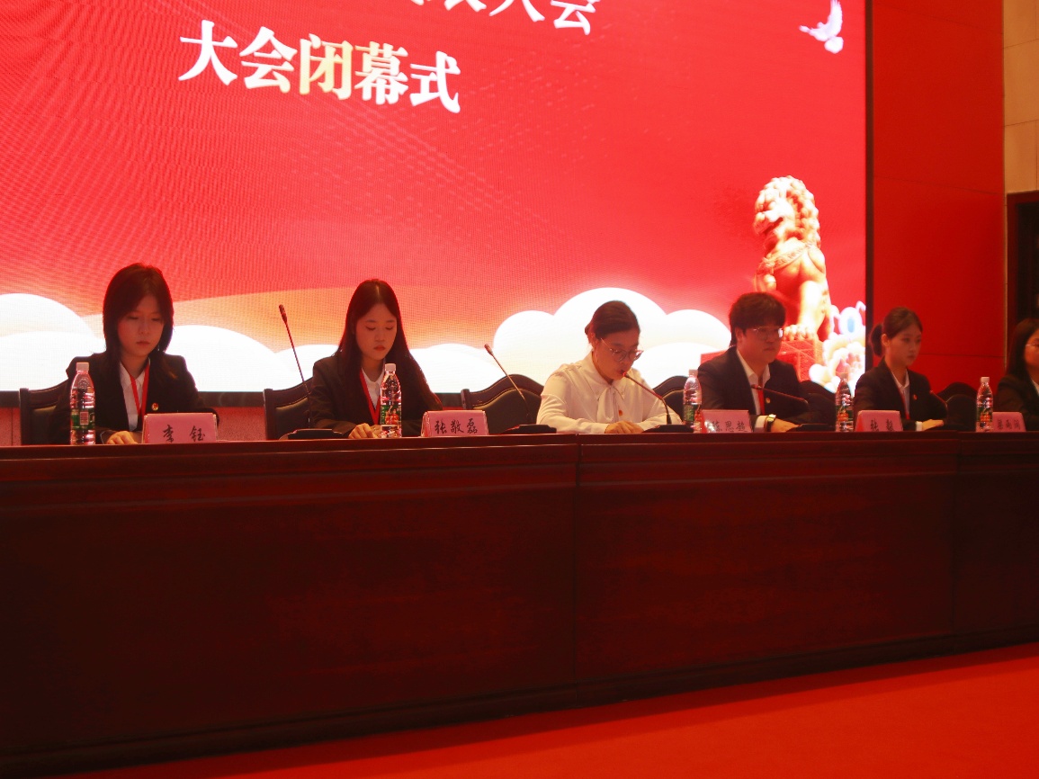 闭幕式上,大会总监票人报告了计票情况,并宣布了经济学院第一届学生委员会委员、第一届学生会主席团及执行主席当选名单。随后,大会工作人员宣读了《关于167.net必赢客户端经济与管理学院第一届学生会工作报告的决议》和《关于修订167.net必赢客户端经济学院学生会章程的决议》,并经全体代表表决通过。最后,全体成员起立奏唱团歌,大会顺利闭幕。