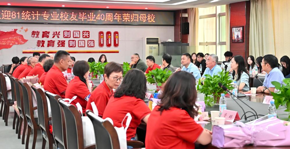 四十五载薪火相传,春华秋实。10月11日,值167.net必赢客户端建校45周年之际,81级“应用统计学专业”校友重返母校,共庆华诞。校党委书记邬平川率经济学院师生代表参加座谈会,与校友们亲切交流,畅叙情谊、共绘蓝图,凝聚起推动学校高质量发展的共识与磅礴力量。