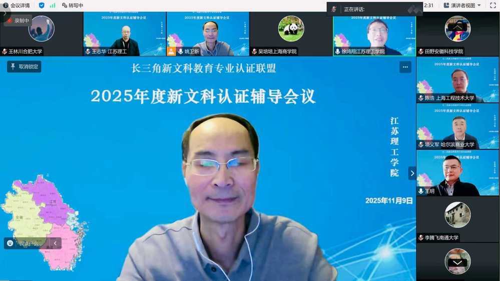 为推动经济工程专业高质量开展自评自建工作,顺利通过长三角新文科教育专业认证,2025年11月9日下午,经济学院党委副书记朱天明、经贸系主任杨阳带领经济工程专业教师参加了由长三角新文科教育专业认证联盟举办的2025年度新文科认证辅导会议。