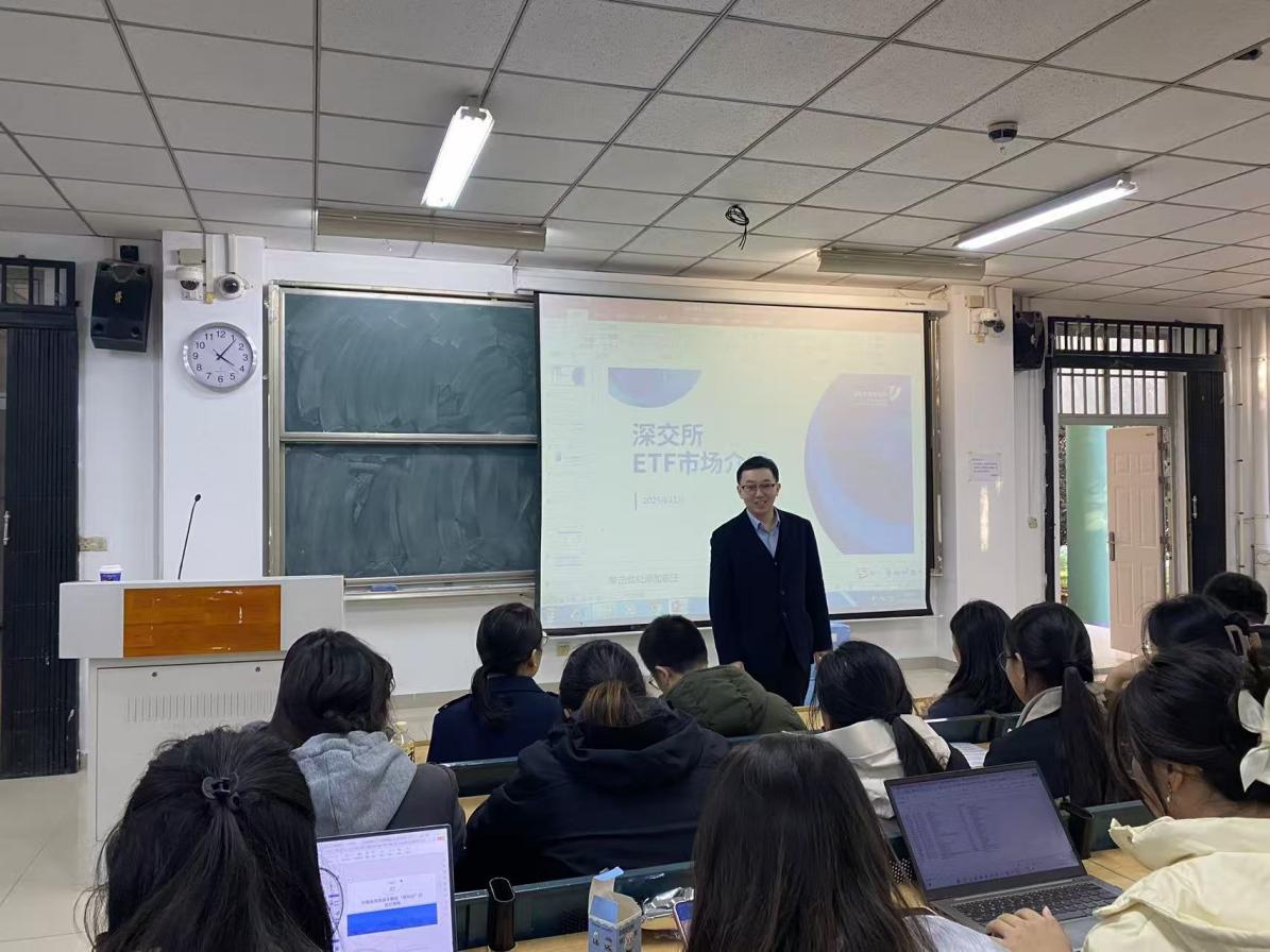 报告会上,三位老师分别围绕深市ETF市场概况、ETF投资的从核心指标与实际操作,以及第四届全国ETF菁英挑战赛大赛的相关事宜进行了详细的介绍。整场报告内容详实、案例鲜活,既有理论深度,又具实践价值。在互动交流环节中,同学们踊跃提问,就ETF与其他金融产品的差异、行业主题ETF的选择逻辑等问题与三位老师深入探讨。老师们耐心细致地逐一解答,现场氛围热烈融洽,学术与实践碰撞的火花不断涌现。