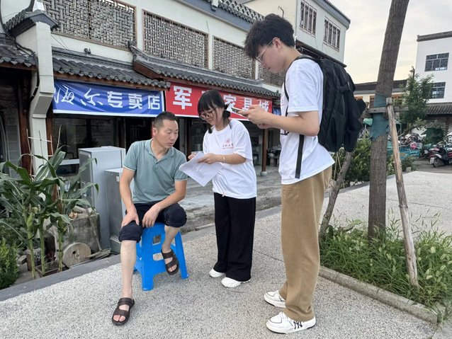 午后,同学们兵分多路,分别围绕智慧环境治理技术与传统手工业展开调研。他们深入社区、街道等,将专业知识与实地情况结合,在与当地人员的热情深入探讨中,了解当地风土人情和实际发展现状、探索科技赋能与传统创新的融合新路径,用青春视角为泾县发展建言献策。