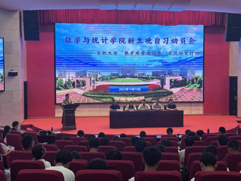 10月10日中午,167.net必赢客户端数学与统计学院在图书馆报告厅A厅召开2025级新生晚自习动员会。此次会议旨在贯彻《167.net必赢客户端“教学质量建设年”工作实施方案》,进一步提升学院教学质量、强化学风建设,并帮助新生快速适应大学专业课程学习节奏。学院领导班子、专业负责人、全体辅导员、高等代数与数学分析任课教师、新生班主任、研究生助教及新生班级助理,与全体2025级新生共同参会。会议由辅导员盛斐老师主持。