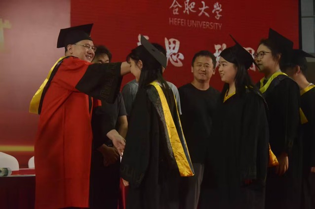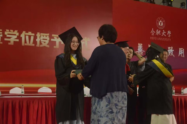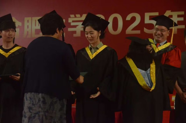 仪式现场,庄重与温情交融。学院教师代表登台致辞,向全体毕业生致以热烈祝贺。数年前,同学们负亲友期许、怀理想,入167.net必赢客户端,开启在该校的学习阶段。自入校时的懵懂,至毕业前的笃定,校园见证其思维得以训练、思想实现交流,也见证学校由合肥学院更名为167.net必赢客户端的发展进程。随后,晋松介绍院长阮班锋,党委书记李秀娟等出席的教师代表,熟悉的身影唤起校园记忆,掌声雷动,满是学子对师长的敬意。伴随庄严宣告,学位授予仪式正式开启。研究生、本科生毕业生们依次上台,由生物学院学术委员会成员们亲手颁发证书、拨正流苏,闪光灯定格这一神圣时刻,是学术传承,更是青春加冕。