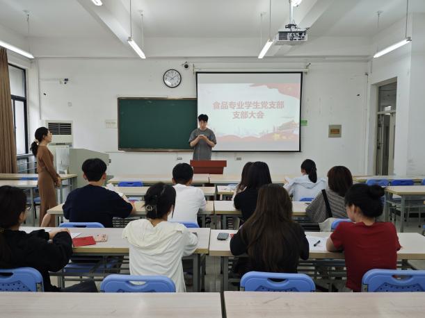 为了推进党纪学习教育走深走实,切实增强党员纪律意识,于5月31日,生物食品与环境学院食品专业学生党支部全体学生党员在生化楼203召开支部大会。食品专业学生党支部书记赵暮雨、全体学生党员参会。会议由赵暮雨主持。