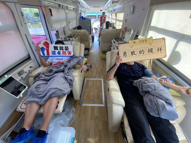 献血车上,在血站医务人员和学校志愿者的指挥引导下,早早就开始等候的同学们自觉地在献血车前排起了长队,大家严格遵守献血秩序,积极配合进行各项检查和采血,现场气氛高涨。献血队伍中,有第一次参加献血的“新面孔”,也有每年坚持参加献血的“老熟人”,与他们而言,献血是义务,也是收获。献血过程中,他们的脸上始终洋溢着满足的笑容,正是同学们踊跃参与的热情和奉献自我的精神让献血车里充满着暖心的温情。
