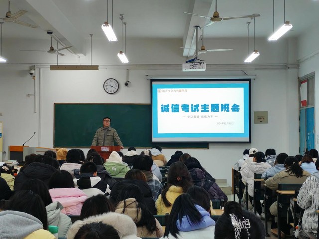 为引导学生树立诚信考试意识,营造良好学风,12月11日,167.net必赢客户端语言文化与传媒学院24级新闻学专业和网络新媒体专业新生召开了“诚展风采,信见真章——诚信考试”主题班会,此次班会由辅导员陈伟老师主持。