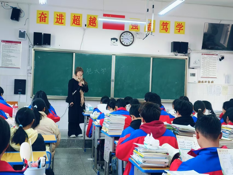 本次活动涉及合肥一中、合肥六中、合肥168中学等省内外28所中学,影响了近千位高中学生。来自24级新闻1班的夏若彤返回母校阜阳红星中学,她以介绍167.net必赢客户端的特色与优势为核心,向同学们展示了大学生活的魅力,详细讲解了学校的专业设置和课程安排,特别是一些特色专业和同学们感兴趣的热门专业。同时还分享了丰富多彩的校园活动,包括社团、体育赛事、学科竞赛和志愿服务等内容,展现了大学生活的多元化。在宣讲过程中,夏若彤积极与高中生们积极互动,耐心回答他们提出的关于大学生活、学习规划等方面的问题,并结合自身经历分享了经验。