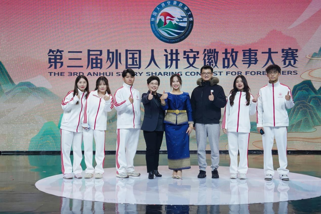 近日,第三届外国人讲安徽故事大赛决赛在安徽广播电视台演播厅圆满落幕。由我院国际中文教育专硕点师生、新闻与传播专硕点研究生与国际教育学院选送的留学生共同组建的参赛团队表现优异,一举夺得汉语组二等奖、新媒体国际传播奖及优秀组织奖,连同复赛阶段获得的优秀短视频奖,实现了该赛事奖项的“全满贯”,充分展现了我院坚定落实必赢“地方性、应用型、国际化”办学定位的育人成效。