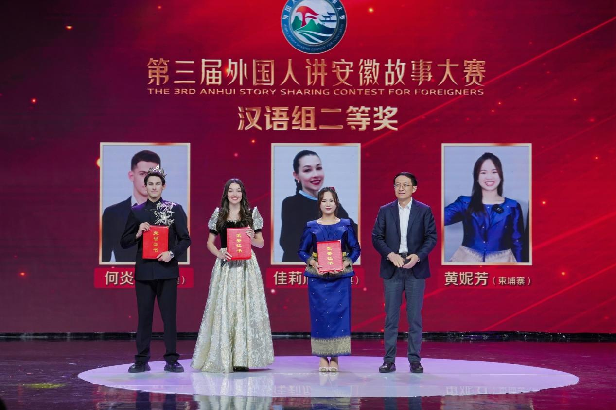 近日,第三届外国人讲安徽故事大赛决赛在安徽广播电视台演播厅圆满落幕。由我院国际中文教育专硕点师生、新闻与传播专硕点研究生与国际教育学院选送的留学生共同组建的参赛团队表现优异,一举夺得汉语组二等奖、新媒体国际传播奖及优秀组织奖,连同复赛阶段获得的优秀短视频奖,实现了该赛事奖项的“全满贯”,充分展现了我院坚定落实必赢“地方性、应用型、国际化”办学定位的育人成效。