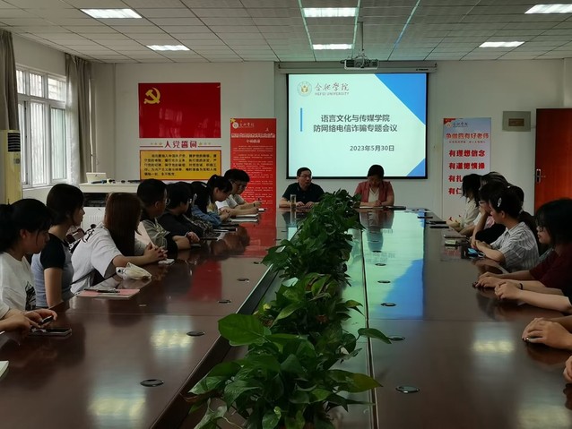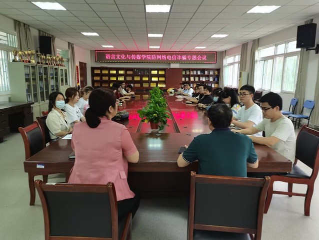 为进一步增强学生防范网络电信诈骗意识,提升防范网络电信诈骗能力,有效预防和减少网络电信诈骗,共建和谐平安校园。5月30日,语言文化与传媒学院在一期五号楼二楼会议室召开了防网络电信诈骗专题会议。院党委书记储昭辉、党委副书记张爱萍、全体辅导员、各班级班长、团支书等学生代表参加了会议。
