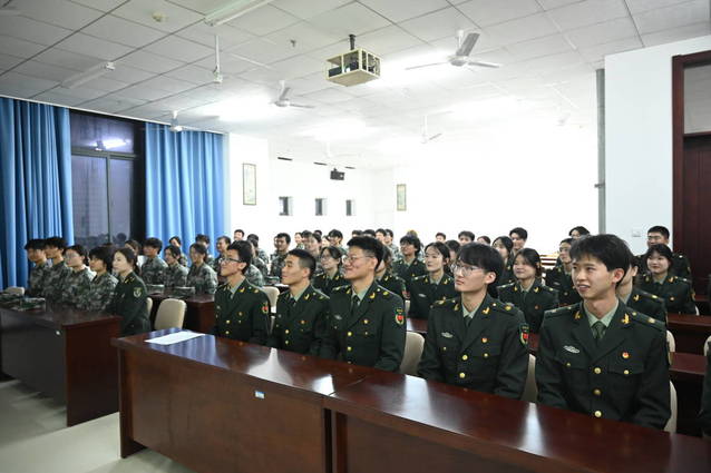 奏唱国歌后,学生处郑国平老师宣读退队人员名单。她对老队员的奉献精神表示崇高的敬意,鼓励新队员们在未来的训练中坚定信念、严守纪律、团结协作,传承好队伍的优良传统,共同发展好这支优秀的队伍。22级队员代表斯晨欢回顾了队员们从入队到退队的幸福时刻,字里行间都流露着对国旗护卫队的满满爱意与不舍;23级队员代表高思彤表达了对退队学长学姐的衷心祝福以及未来训练活动的期待。随后,国旗队队长曾必来宣布聘请宋雅群任新一届国旗护卫队队长一职,并宣读了其他职位的聘任情况。宋雅群队长表达了对老队员们深深的感谢,她表示将担任起队长这份职责,带领国旗队不断向前迈进。最后,23级队员为24级新生队员佩戴胸章。