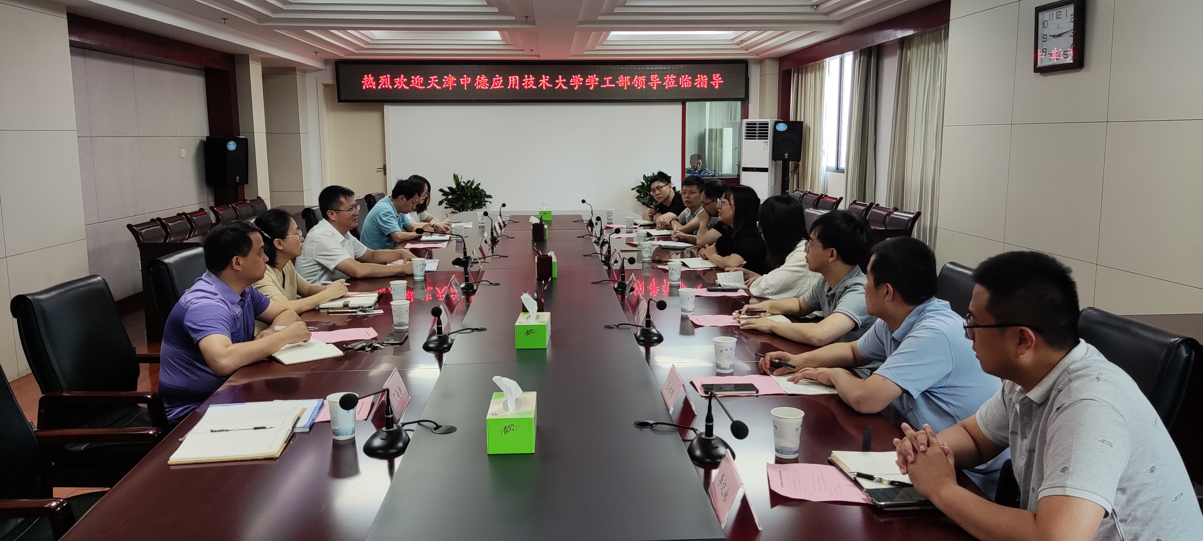 6月15日上午,天津中德应用技术大学学工部副部长崔晓琳一行8人来校调研学生工作。必赢党委学生工作部部长丁增云、先进制造工程学院党委副书记蔡灵美等参加调研交流。
