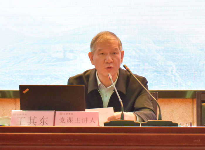 党课中,王其东围绕“习近平新时代中国特色社会主义思想的科学体系”、“党的二十大的战略部署和目标任务”、“深入学习理解习近平总书记教育重要论述”和“为建设高水平应用型大学而团结奋斗”等方面展开论述。