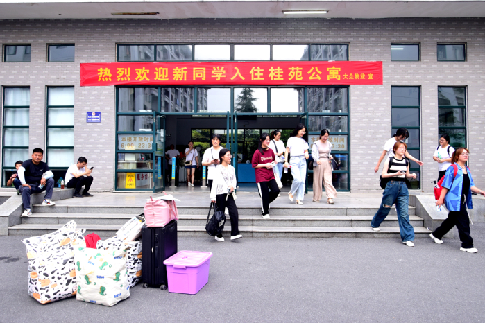 后勤部门坚持以学生为中心的原则,为新生提供一个温馨、安全、舒适的校园环境。桂苑物业经理表示:“在新生到来之前,我们提前组织将宿舍重新翻修,并在宿舍区新增绿植。此外,在宿舍大厅摆放悬挂防范电信诈骗的立牌和横幅,帮助新生能够树立防诈骗意识。”后勤部门正以饱满的姿态和热情的服务,力争为新生留下“最美合院”印象。