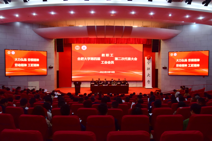 3月18日,学校在图书馆报告厅A厅召开第四届教职工、工会会员第二次代表大会。校领导王其东、吴春梅、陈秀、张思扬出席此次大会,全体代表参加会议。