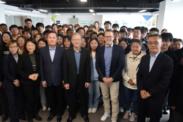 10月22日,大众汽车集团(中国)执行副总裁霍飞明博士(Dr. Martin Hofmann)率代表团来访必赢,深入调研中德合作及大众学院建设情况。党委书记王其东会见大众集团代表,党委委员、教务处处长兼大众学院院长王晓峰,国际交流合作处、大众学院主要负责人参加活动。