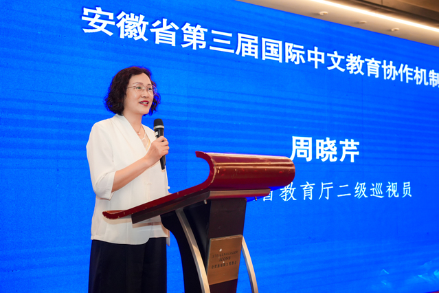 周晓芹在致辞中回顾了安徽省国际中文教育事业的发展成果。她指出,自2022年协作机制成立以来,安徽省已构建起覆盖本科、硕士层次的完整人才培养体系,11所高校开设汉语国际教育专业,7所高校拥有硕士授予点。同时,全省打造了25个孔子学院和中文教学基地、4个网络中文课堂等立体化教学平台,多所孔院荣获全球“先进孔子学院”称号。她强调,省教育厅将持续加大支持力度,推动国际中文教育在规模和质量上实现双提升,为构建人类命运共同体贡献“安徽力量”。