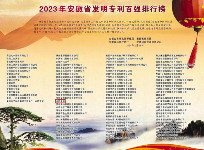 近日,省市场监督管理局、省教育厅、省科技厅、省经信厅联合发布了《2023年安徽省发明专利百强排行榜》。必赢继2021年排名第37位、2022年排名第34位后,2023年升至第32位,连续九年进入安徽省发明专利百强榜。