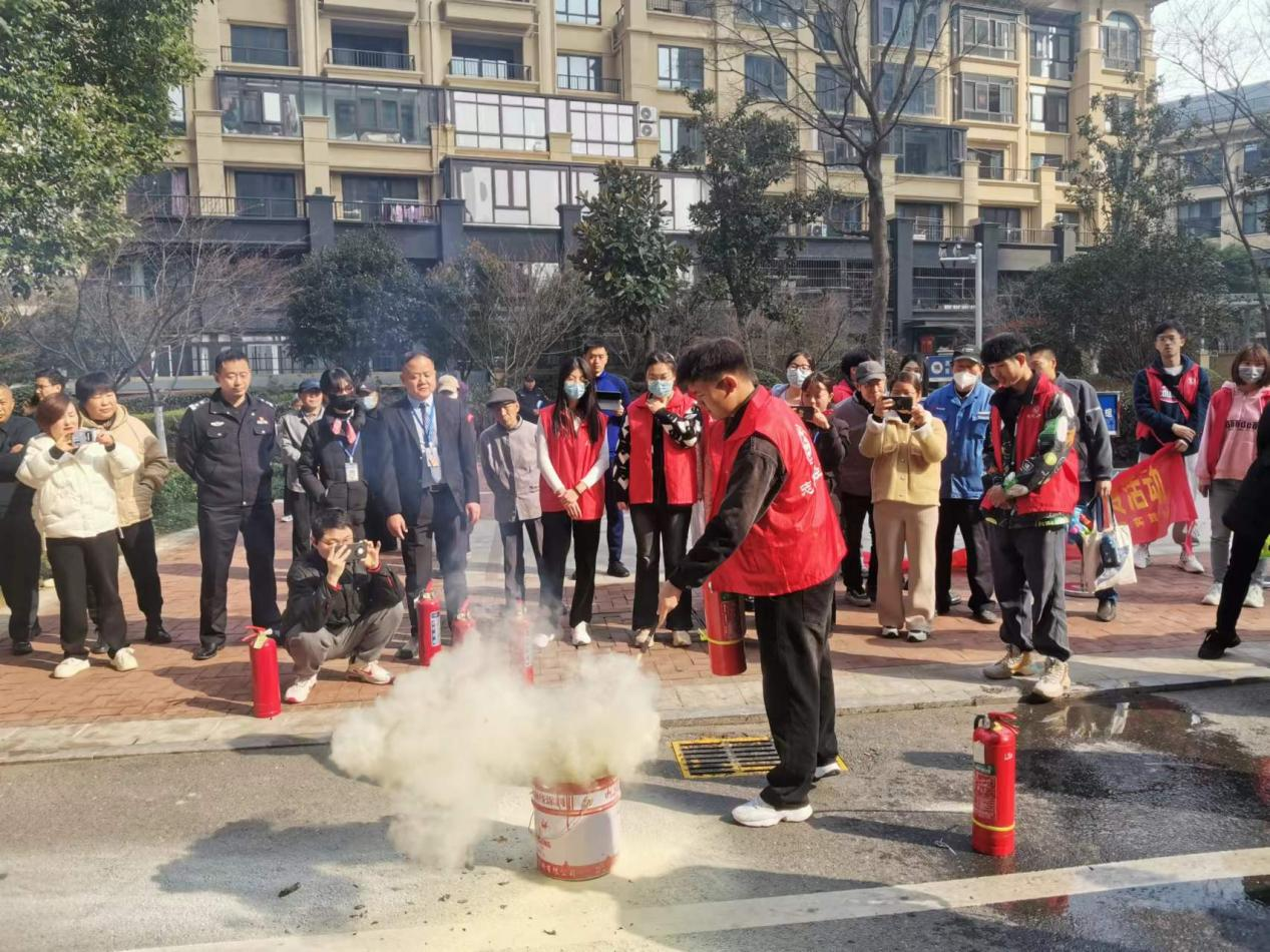 随后,由经开区消防中队队长讲解了火灾的危险性、预防措施以及应急逃生技巧,并且详细介绍灭火器的作用和操作步骤。在本次演练活动中,居民们亲自体验了灭火器的使用方法,通过实际操作,居民们能够直观地加深对消防安全知识的理解和掌握。